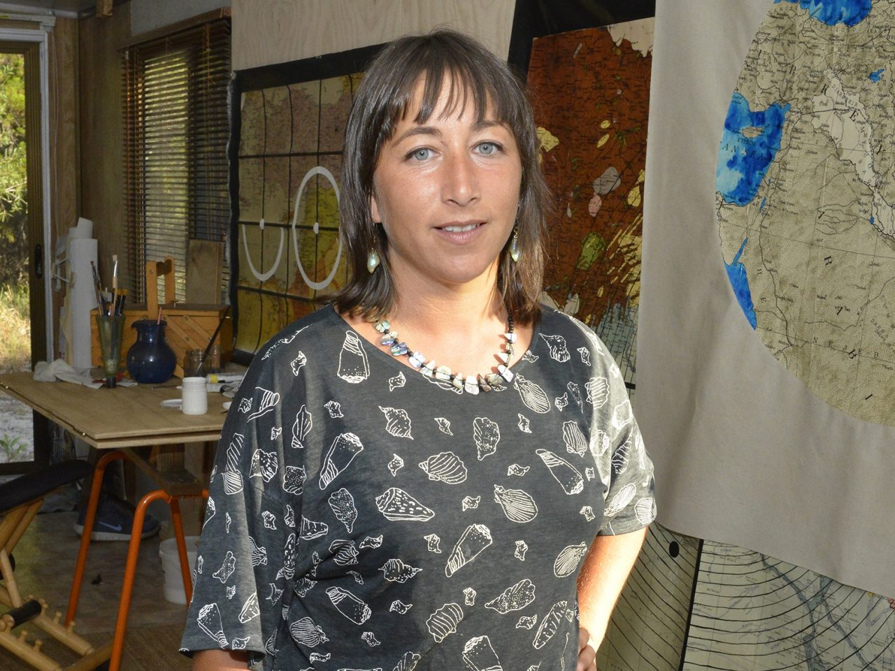 Megan Cope is a Quandamooka woman (North Stradbroke Island). She has Bachelor of Visual Arts (Visual Communication) from Deakin University, Victoria. Her site-specific sculptural installations, video work, and paintings and prints investigate issues relating to identity, the environment and mapping practices.
